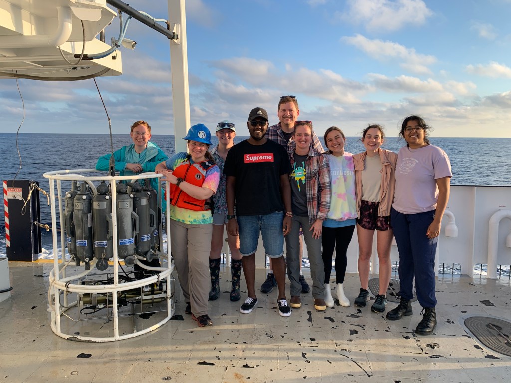 In Spring 2022, we participated in a research cruise that included three days of ship time in the Gulf of Mexico. Support came from the Florida Institute of Oceanography, and we sailed on the R/V Hogarth. The sea-going team consisted of a science party of nine that included two senior scientists, four graduate students, one post-baccalaureate student, and two undergraduate students. We learned about ship capabilities and infrastructure, developed protocols and tested instrumentation, and collected preliminary data. This cruise functioned as a “practice run” to develop what would become the new “Microbial Life in the Oceans” Immersion course in 2024.
