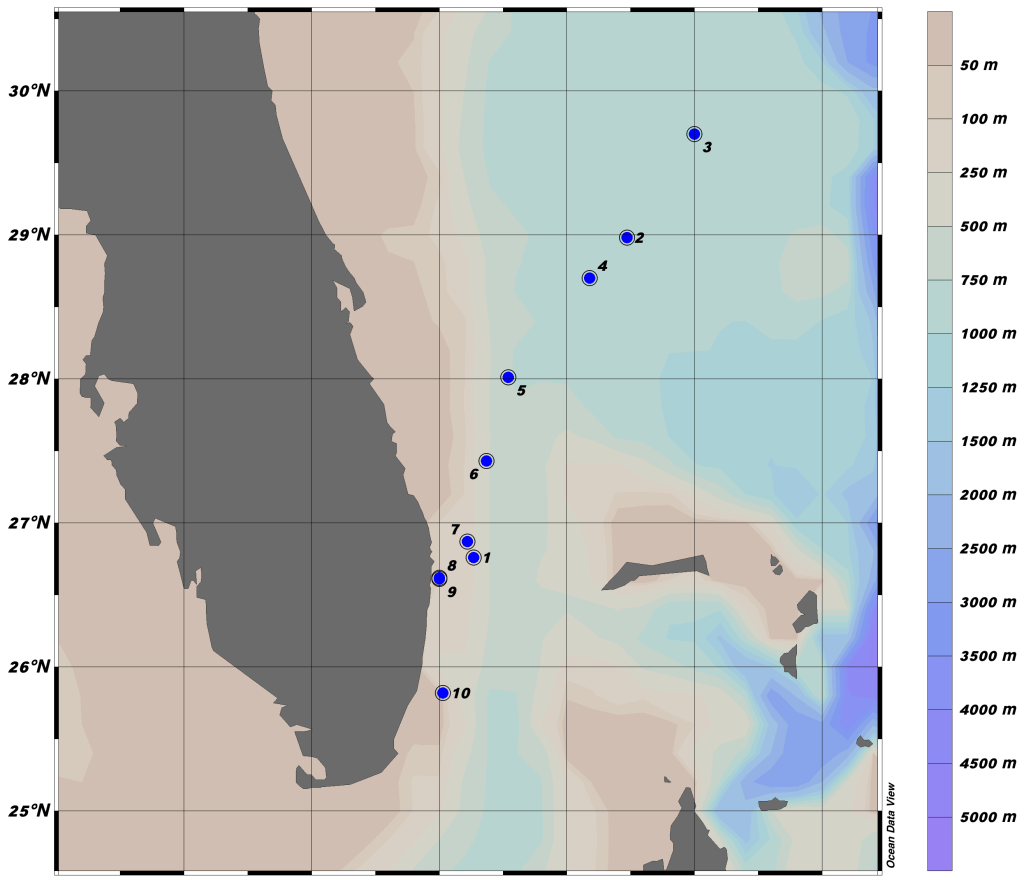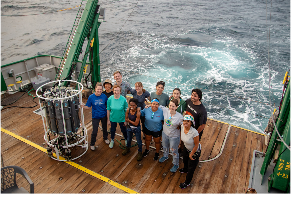 In Spring 2024, we launched the first official “Microbial Life in the Oceans” Immersion course. We spent the first two weeks of the course learning the background & basics of microbial oceanography and practicing with instruments and protocols we would use at sea. We then participated in a research cruise that included five days of ship time in the Atlantic. Support came from the National Science Foundation, and we sailed on the R/V Walton Smith. The sea-going team consisted of a science party of 11 that included two senior scientists (course co-instructors Dr. Durham & Dr. Lynn-Bell), two graduate students (Laurel Meke & Lisa Coe), and eight undergraduate students. We returned from sea with loads of data and samples collected. The last week and half of the course was spent processing data and samples, and synthesizing what we had learned.